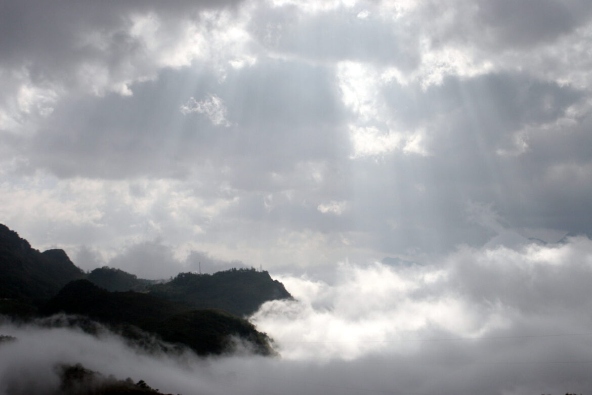 14 km geht es von Sa Pa hinauf bis zum höchsten Pass Vietnams, dem Tram Tong Pass auf knapp 2000m. Schon nach gut 100Hm löst sich der dichte, feuchte Nebel ein wenig und wir können die angrenzenden Dörfer sowie ab und zu einige Bergspitzen erkennen. Der Nebel, die Sonne und die Berge geben ein tolles Schauspiel ab. Unsere Stimmung ist gut, wir freuen uns, aufgebrochen zu sein. Den „Silberwasserfall“ knipsen wir im Vorbeifahren von der Straße, wobei dieses Foto eher ein „must“ ist, denn ein gutes. Einige Touristengruppen pilgern gerade den Weg entlang des Rinnsals hinauf. Über wie viele Wasserfälle haben wir auf unseren Reisen bereits lauthals lachen müssen. Neuseeland, Indonesien, Chile: gemeinsam war ihnen immer eine großartige touristische Ankündigung bei geringer Impressionskraft. Der heutige mag in der Regenzeit vielleicht sogar gar nicht so übel aussehen. Je höher wir kommen, desto enger umarmen uns wieder die feuchten, weißen Schwaden. Die Sicht ist wieder auf knappe 50m begrenzt und dies bleibt leider auch so, bis wir nach über 30km auf 500m Höhe die Häuser und angrenzenden Felder wieder sehen. Diese Abfahrt geht durch eine der spektakulärsten Landschaften Südostasiens! Tja, spektakulär sehen höchstens wir und die Räder aus, nach dem Durchfahren zahlreicher Baustellenabschnitte und dem dazugehörigen Nieselmatsch. Man kann nicht immer Glück mit dem Wetter haben.