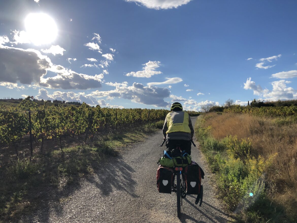 Bis Carcassonne suchten wir uns dann auch mal eigene Wege abseits des Kanals. Es wurde hügeliger und landschaftlich wunderschön! Mediterran und die oft über 3000 m hohen Zacken der Pyrenäen in der Ferne schon in Sichtweite. Ganz oben weiß gezuckert. Herbst! Wir hatten das ja schon. Am späten Abend rollten wir auf den Camping nahe der Stadt. Über die alte Brücke kommend hat man einen umwerfenden Blick auf die Cité de Carcassonne! Wie sie da lag, die alte Burganlage, in der Abendsonne, wie im Märchen!