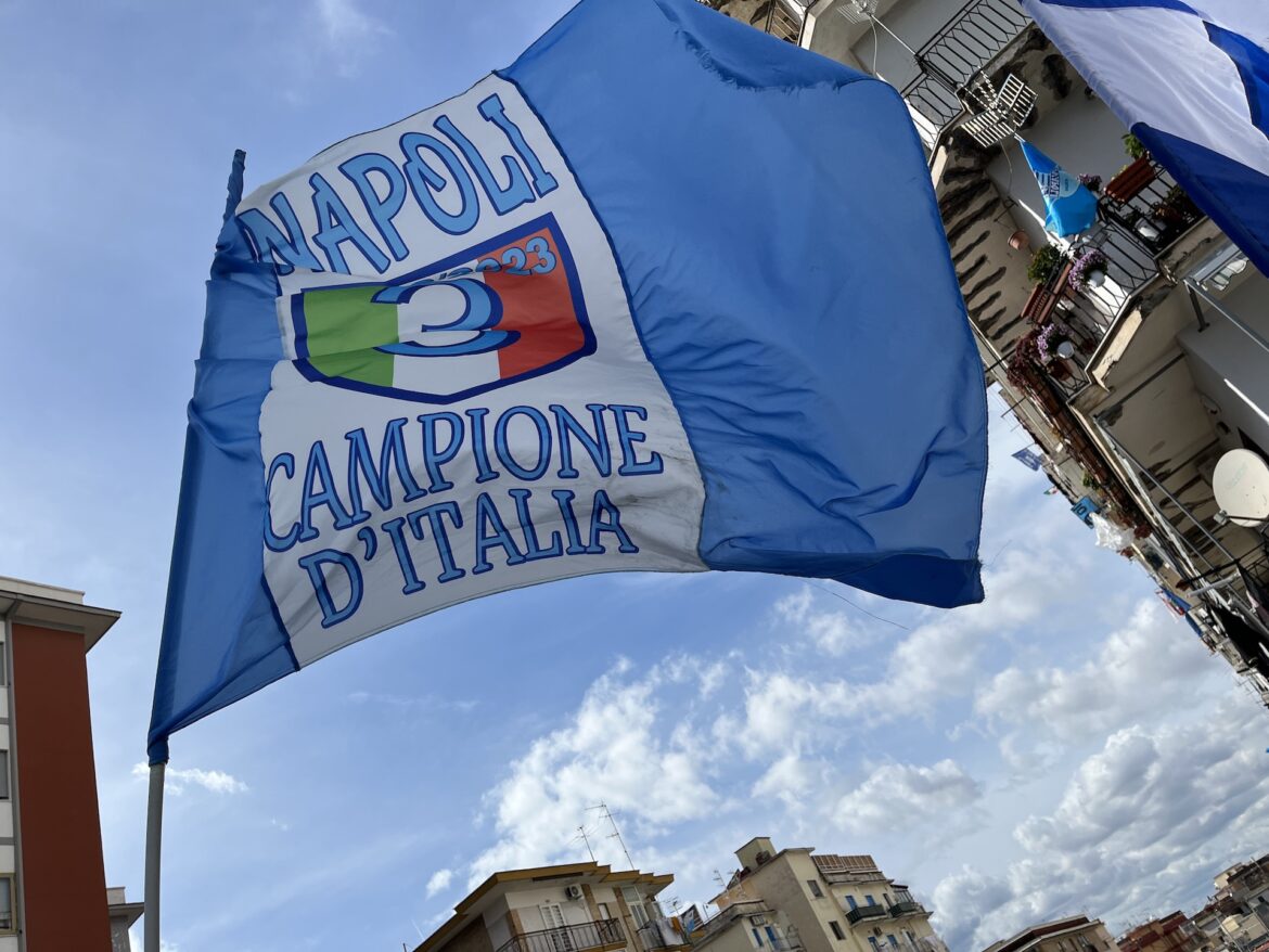 Mehr noch als die Wäsche vor den Fassaden, tanzen die Fähnchen und Bänder für den SSC Napoli zwischen den Häusern herum und geben der ganzen Stadt ein blau-weißes Herz. Nicht nur in den Quartieri Spagnoli findet sich Diego Maradona auf Hauswänden verewigt. Ein hinduistischer Schrein ist harmlos dagegen. Ich lasse mir einen Zitronen-Orangen-Saft von einem alten Neapolitaner pressen, der hier seit Jahren seine Bude betreibt und das Treiben beobachtet. Es gibt langweiligere Arbeitsplätze auf dieser Erde.