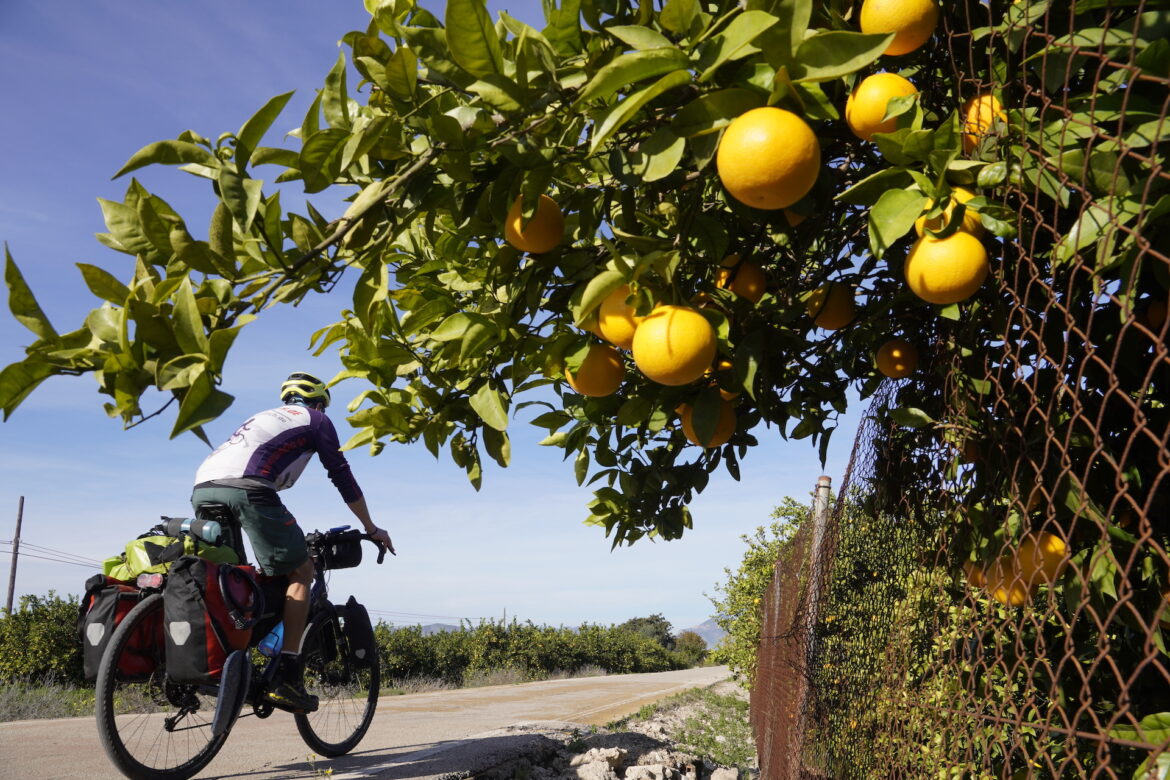 Dass wir nun bereits mittendrin in der autonomen Region Valencia waren, konnte man besonders an einer Frucht erkennen: der Orange. Die Landschaft veränderte sich stetig und mit den großen Orangen- und Mandarinenplantagen sowie den grünen Bergen mit Felsriegeln sah es aus, als hätte man in Südtirol einfach die Früchte ausgetauscht. Auf dem Abschnitt bis l’Ampolla nutzten wir nochmal den Zug, um den Großraum der Stadt Valencia (waren wir schonmal 2015 mehrere Tage) zu überbrücken und durften noch ein paar Tage Sonne tanken, so wie die Orangen um uns herum, die schon ziemlich reif waren aber doch noch nicht loslassen konnten.