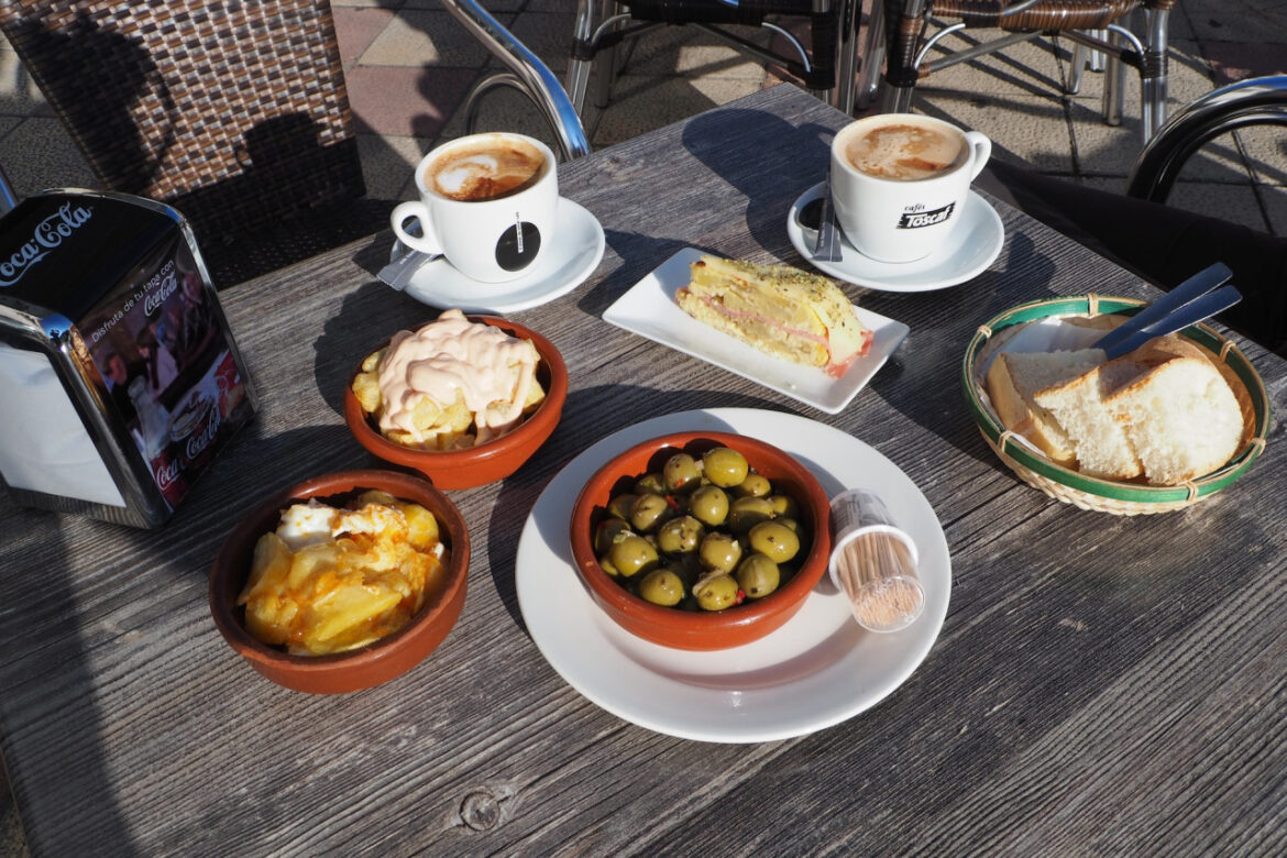 Eine Tapas-Bar wurde unser Stammlokal und wir radebrechten mit dem Personal mehrmals täglich bei Tapas, wahlweise mit „Café con leche“, “vino tinto” oder einem „cana de cerveza“, auf Spanisch. Richtig viel sprechen können wir nicht, aber dank Latein und Französisch, echt viel verstehen.