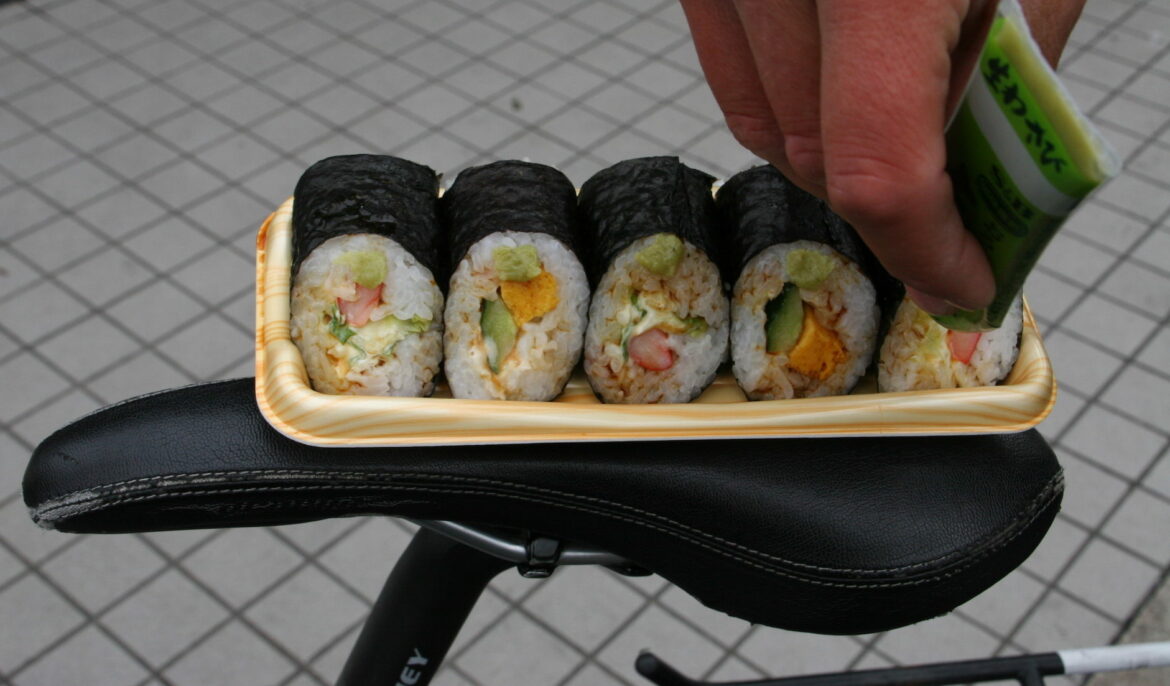 „Doits? Ah, doits? … America? Canada?“, „No America! Doits!“, “Ah ah … ah, doits. Hm.” So die erste Nikolausi-Osterhasi-Konversation des Tages, die sich noch ein wenig in die Länge zieht. Wir sind im Park vor der Busstation, wo wir immer unser Gepäck einschließen und tauschen Molles hinteren Mantel und die Kette aus. Dabei haben wir Gesellschaft von einigen Park-Dauergästen, die froh sind, mal etwas anderes als hastende Geschäftsleute zu sehen. Ja und dann kommt es zu solch interessanten Gesprächen. Den Rest des Monologs verstehen wir sowieso nicht und nicken daher nur freundlich. Ein Passant mit Fahrradreparaturerfahrung hält kurz an, schaut und greift dann beherzt ein, als er mich mit dem neuen Mantel und dem Schlauch hantieren sieht. Er zieht das Ding schneller auf, als ich sehen kann und ich bedanke mich. Als wir die Kette wechseln, haben sich die meisten schon wieder auf ihr Bänklein verzogen, wo sie in der Sonne schlafen oder ratschen. Einer kommt nochmal herüber, als er sieht, dass wir mit der Arbeit fertig sind: „Handu – washu“, sagt er und deutet auf die Solaria-Plaza, „toiletu – soapu“, fügt er hinzu, während er sich die Hände reibt als wasche er sie sich. Ungelogen: die Japaner hängen an alle englischen Wörter entweder u oder o an. Im Lokal kannst du „raisu“ als Beilage bestellen oder ein „bierru“ zum Trinken. Kann sein, dass man darauf aber „waito“ muss. Der Wächter vor dem chinesischen Konsulat in Nagasaki fragt schon einmal nach unserem „Cantru“, und schiebt nach unserem Zögern wegen Nichtverstehens gleich nach: „America?“. Einem Passanten, der uns in einer Kleinstadt meint, den Weg nach Fukuoka auf der Karte zeigen zu müssen (wir hatten nur kurz überlegt, welche Route wir einschlagen wollen und er meinte, wir wüssten nicht wohin), müssen wir schon mal klar machen, dass wir nicht die „reddo“ Straßen nehmen wollen, weil die immer so stark befahren sind, sondern dass wir entweder die „griinu“ 12 oder die „ieru“ 44 nehmen werden, da grüne und gelbe Straßen Nebenstraßen sind.