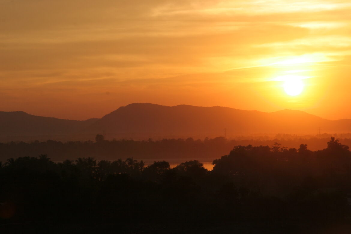 Der Tag ist noch nicht so weit fortgeschritten, was es uns ermöglicht, die Abfahrt bis Pakse anzugehen. Der langsam sinkenden Sonne entgegen rollen wir gemütlich 40 km bergab. So winkt es sich natürlich besonders entspannt. Nach ein paar Kilometern von Schmieden (sieht wirklich aus, wie im Mittelalter) folgen noch einige Kilometer mit Leuten, die Bastmatten und geflochtene Bastwände herstellen, dann beginnt die drittgrößte Stadt Laos: Pakse. Sie kann immerhin als Stadt bezeichnet werden und es herrscht sogar so etwas wie Verkehr. Hier fließen Sekong und Mekong zusammen, die Lage ist sehr hübsch. Auf der Dachterrasse des Hotels können wir uns einen guten Überblick verschaffen. Als es dunkel wird sieht man, wie klein die Stadt bzw. die beleuchteten Abschnitte aber tatsächlich sind. Ganz Laos ist doch ein großes Dorf. Sabaidee – das heißt auch „Auf Wiedersehen!“ – ja, das nehmen wir beim Wort. Auch wenn wir morgen Laos verlassen, in gut zwei Wochen werden wir uns in Vientiane wieder sehen!