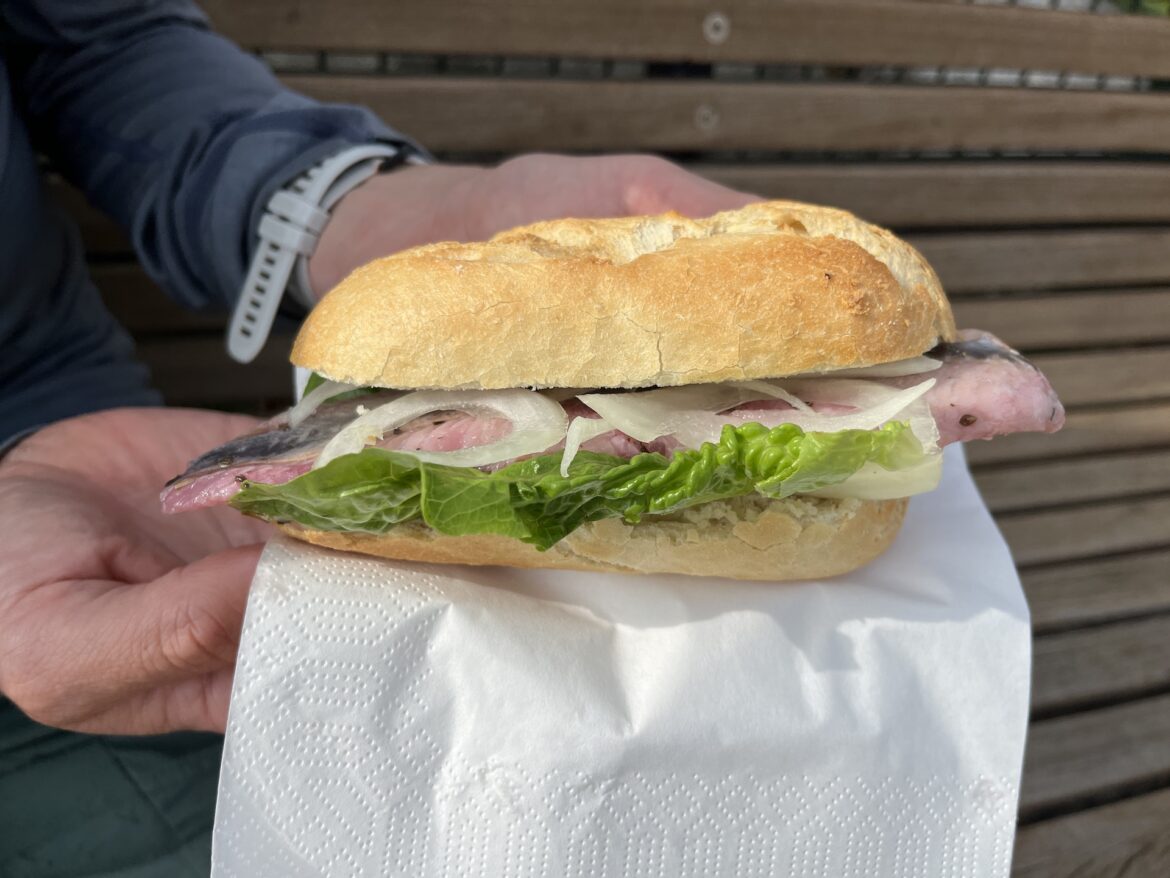 Wir teilen uns den Weg entlang des Brodtener Steilufers mit zu vielen Ausflüglern auf Rädern und zu Fuß. Wir hüpfen am Timmendorfer Strand ins Meer und stoppen für ein Fischbrötchen. Das muss man zu jeder Tageszeit mitnehmen, denn die Fischbrötchenzone ist wie gesagt nicht sehr groß in Deutschland.