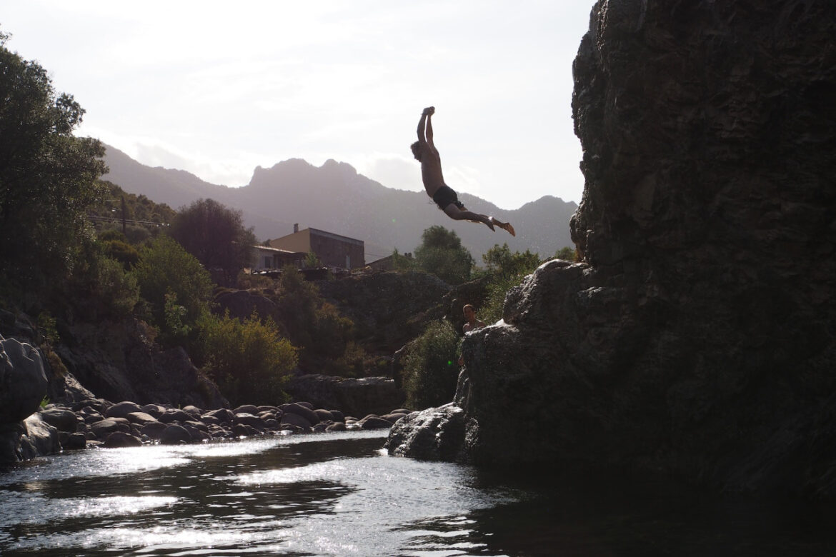 Jetzt sind wir in Korsika und machen Urlaub. Anders kann man das jetzt wirklich nicht nennen. Wir haben uns Anfang September mit guten Freunden, deren Tochter und unserem kleinen Patenkind in der Nähe von Bastia getroffen. Seitdem reisen wir immer der Küste entlang in den Süden. Wir haben hoch oben über Calvi die Aussicht vom tollen Camping Panoramico genossen, sind in den Pools des Fangos im gleichnamigen Tal geschwommen, getaucht und von Felsen gesprungen. Wir haben den höchsten Pass Korsikas, den Col de Vergio, per Rad erklommen, die atemberaubenden Küstenabschnitte erradelt und am Strand von Agone in der Lounge gelegen und Pastis geschlürft. Wir haben mit den kleinen Kindern gespielt, im Pool, im Wald, am Fluss, in Schluchten, haben Menus gekocht, mit Rotwein und Rosé angestoßen und bis in die Nacht mit kurzen Hosen dagesessen und gelacht. Sowas kann man durchaus Urlaub nennen.