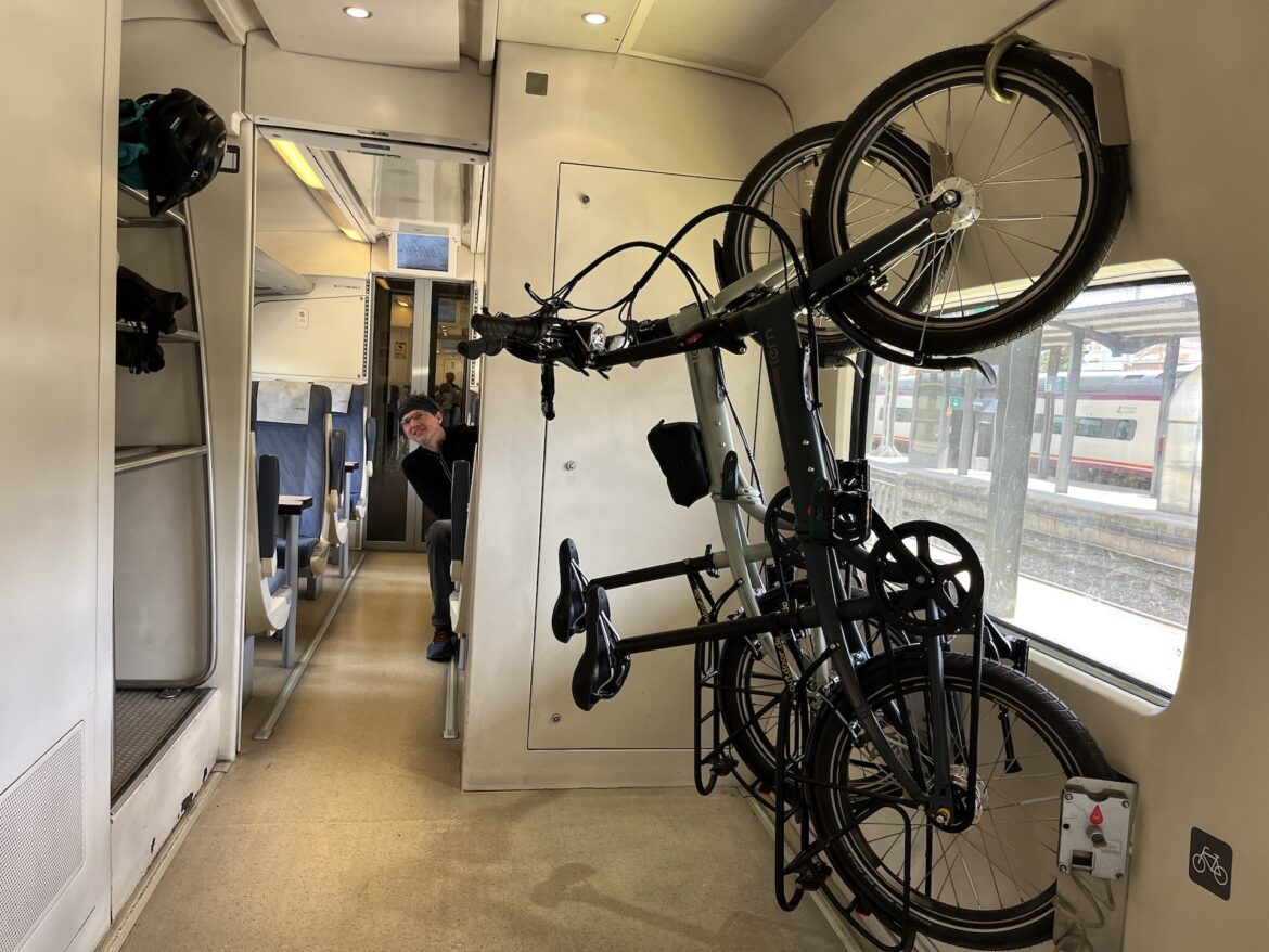 Züge bringen uns von hier innerhalb einer Woche nach Lissabon, unsere bisher kaum verwendeten Klappräder gestalten uns diesen Schienen-Trip komfortabel. (Wer wissen will, wie es ist, mit dem Klapprad in den Zügen Österreichs, der Schweiz, Frankreichs, Spaniens und Portugals zu reisen, kann hier hören). Die Züge haben wir bereits fast alle gebucht, besonders für Züge in Spanien ist das wichtig, denn wenn die App „full train“ anzeigt, kommt man einfach nicht mehr mit. Schützt vor „vor dem verpissten Klo am Boden sitzen“, wie man es bei der DB kennt, bringt einen aber dann auch nicht weiter. Von daher steht der Reiseplan und sieht folgendermaßen aus: